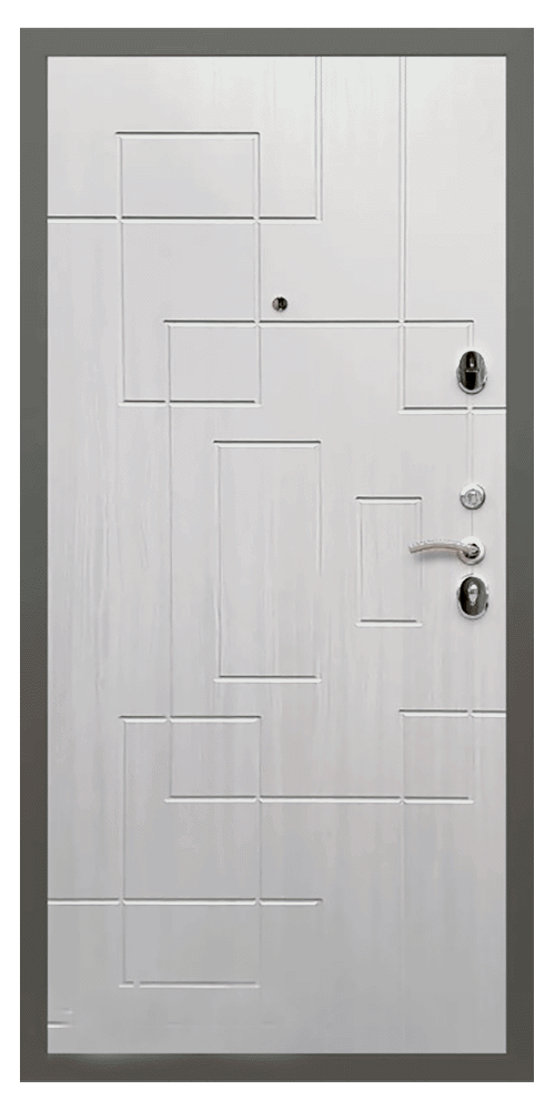 Оснащена двумя замками: сувальдным и цилиндровым, ночной задвижкой, ручкой, глазком.